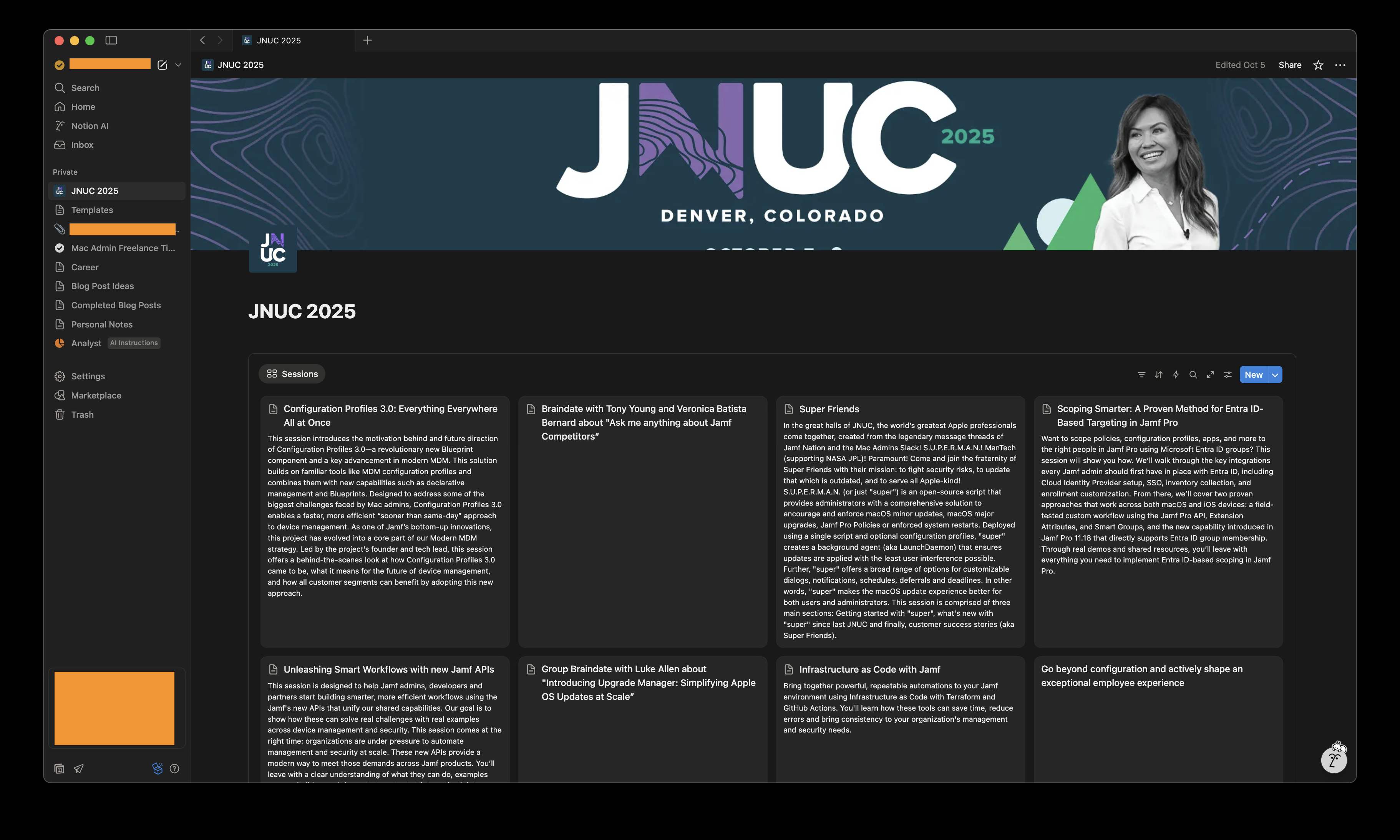 I used Notion to take notes during JNUC for the sessions and braindates I had the opportunity to attend. This will help when I need to review with my team.