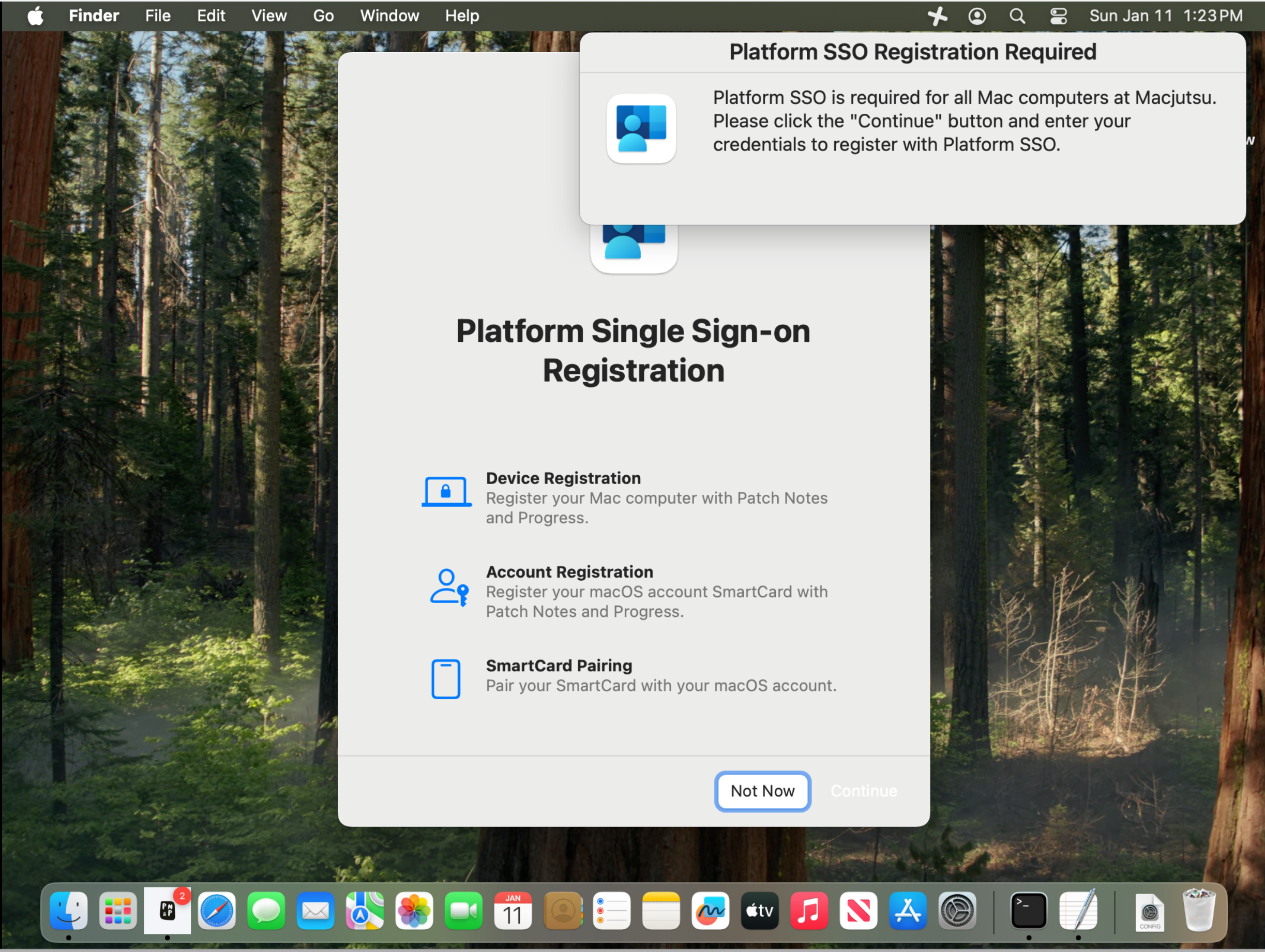 - It uses macOS frameworks like System Events, System Event UI, and Accessibility to bring the correct System Settings panes to the foreground and keep the user on-task until Platform SSO registration is complete (and optionally Touch ID as well).